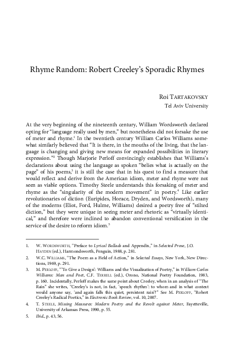 Pdf Rhyme Random Robert Creeley S Sporadic Rhymes Roi Tartakovsky Academia Edu